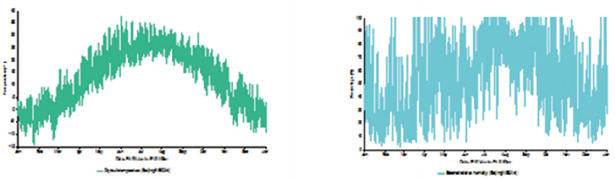 图2 (左)为北京地区全年干球温度变化,图2 (右)为北京地区全年相对湿度变化。